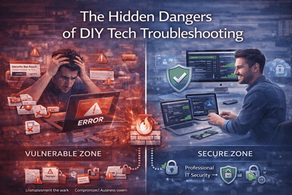 When your Mac suddenly won’t boot, your iPhone displays cryptic error messages, or your iPad refuses to sync critical business files, the temptation to dive into do-it-yourself troubleshooting can feel overwhelming. After all, countless YouTube tutorials and forum posts promise quick fixes that seem simple enough. However, the risks of DIY troubleshooting (data loss, security holes) extend far beyond temporary inconvenience—they can permanently compromise your business data, create devastating security vulnerabilities, and transform minor technical hiccups into catastrophic system failures.