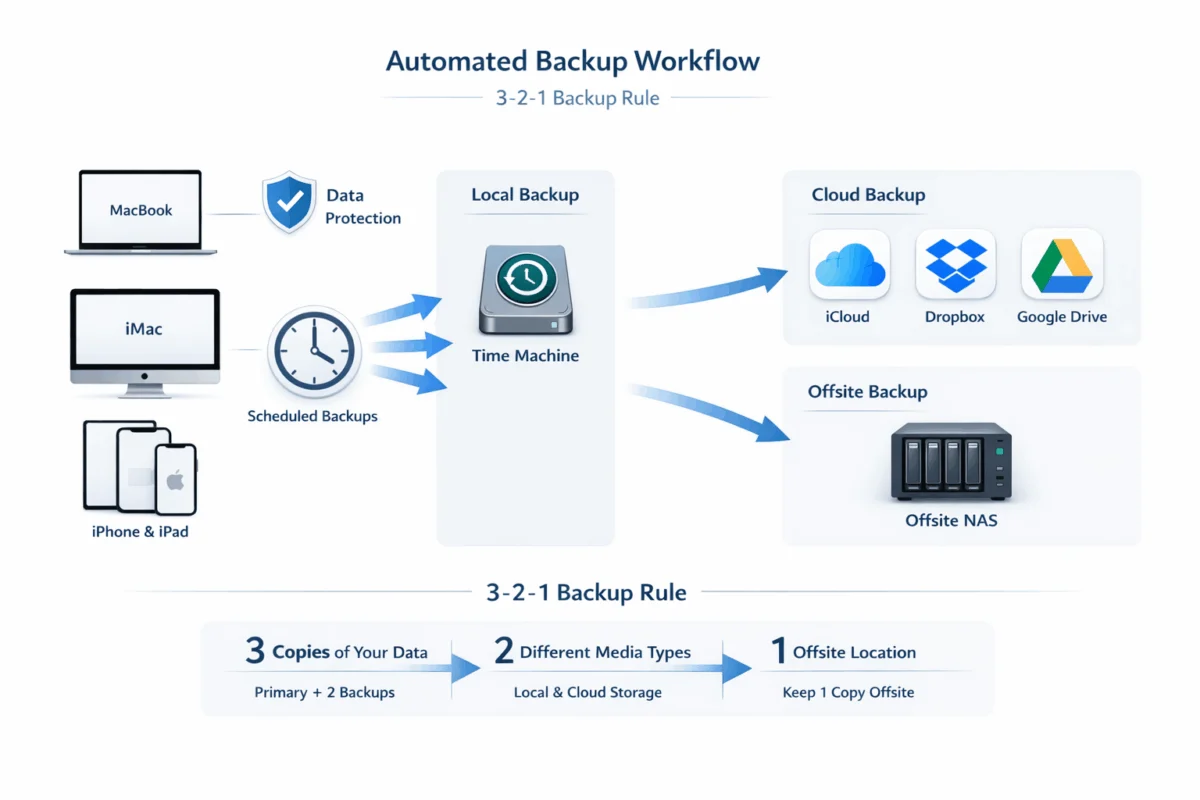 Implementing best practices for automated backups (including offsite/cloud backups) is one of the most critical investments any Mac user, creative professional, or small business can make. The combination of local Time Machine backups, cloud storage synchronization, and offsite backup services creates a robust defense against the inevitable reality of data loss.