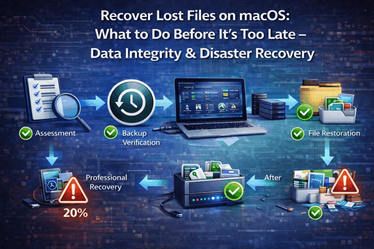 Data loss doesn’t have to be a business-ending catastrophe. The key to recovering lost files on macOS: what to do before it’s too late – data integrity & disaster recovery lies in preparation, quick response, and professional expertise when the stakes are high. Every Mac user—from individual creatives to small business owners—needs a comprehensive data protection strategy that goes beyond hoping their reliable Apple hardware never fails.