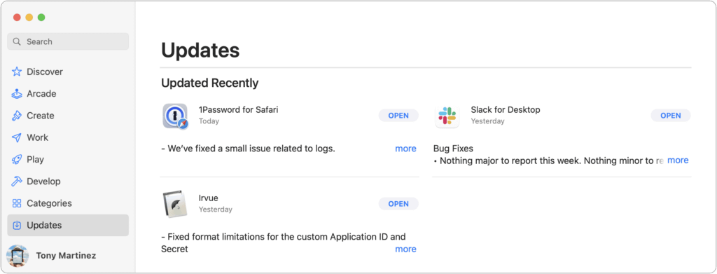 - Update apps: Make sure all your apps are as up-to-date as possible. If you regularly put off updates, now’s the time to let them complete so you have Sonoma-compatible versions.
