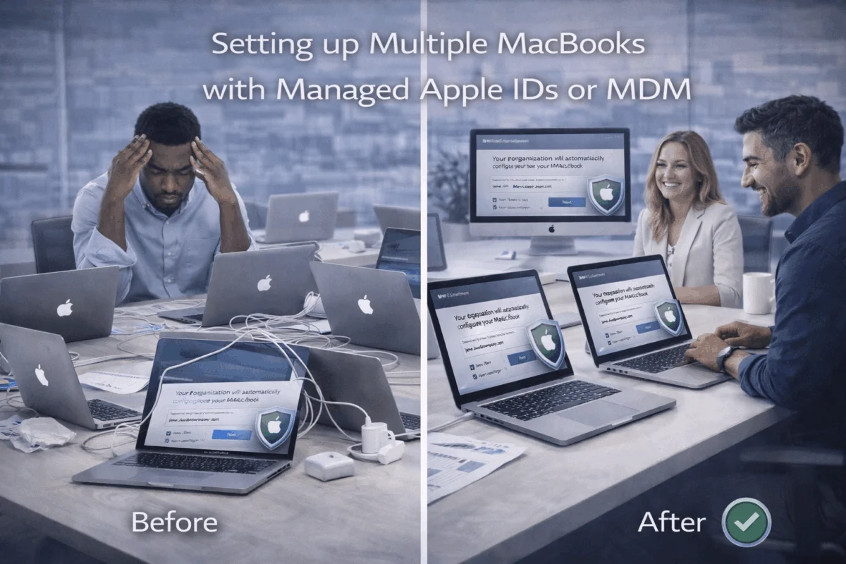 Managing a fleet of MacBooks can feel overwhelming when you’re running a creative agency or small business. One day, you’re focused on client deliverables, and the next, you’re troubleshooting why the new designer can’t access shared files or why security settings vary wildly across your team’s devices. Setting up multiple MacBooks with managed Apple IDs or MDM transforms this chaos into a streamlined, secure system that actually supports your business goals rather than hindering them.