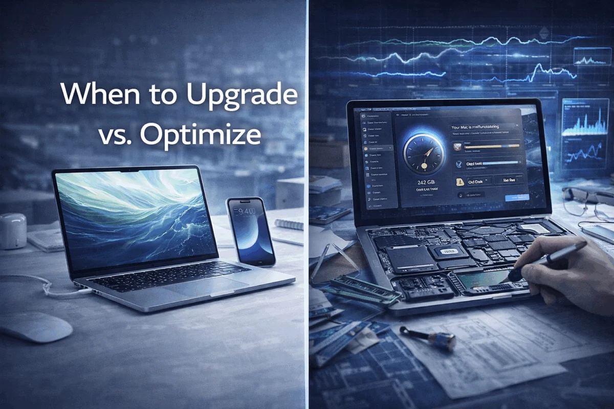 Picture this: your trusty MacBook Pro starts showing its age with slower boot times and spinning beach balls during video calls. You’re faced with a critical decision that could impact your productivity and budget for years to come. When to upgrade vs. optimize isn’t just about choosing between spending money now or later—it’s about making strategic decisions that align with your business needs, creative workflows, and long-term technology goals.
