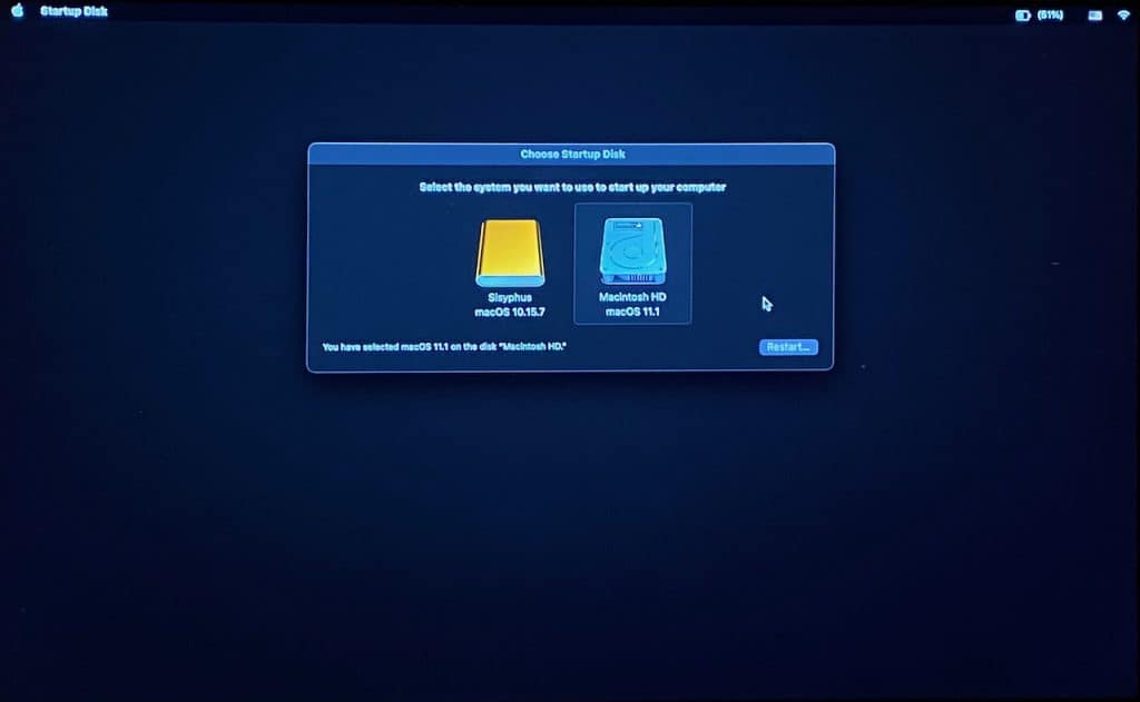 Note that M1-based Macs can’t boot from just any external drive. We’re all still learning about the new platform, but it seems that you need a Thunderbolt 3 SSD that has been freshly formatted with APFS and set up with a new installation of macOS 11.1 Big Sur. See Howard Oakley’s writeup for details.