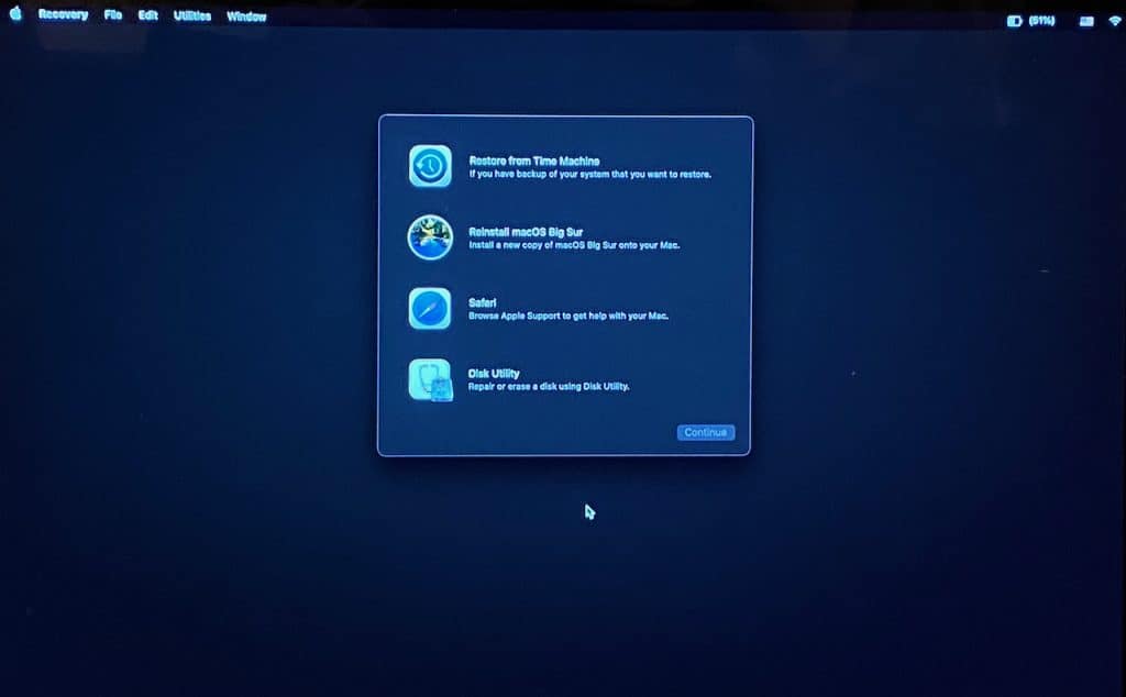 When you need to reinstall macOS or restore from a Time Machine backup, head to macOS Recovery. From the Startup Manager screen, select Options and click Continue underneath it. After you choose a language, an initial macOS Recovery screen appears. Note that you have access to the Apple menu, which lets you choose Startup Disk, Restart, or Shut Down, and to the Recovery Assistant menu, which includes a potentially useful Erase Mac command.