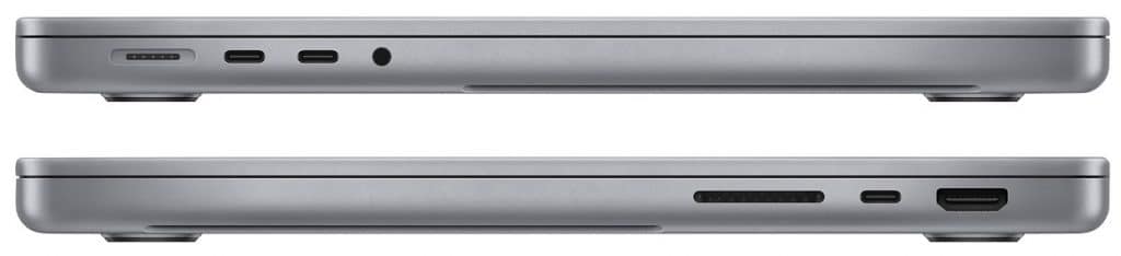 - Ports: Previously, the MacBook Pro had just four Thunderbolt 3 ports, forcing users to carry dongles to connect to legacy devices. The new models still lack USB-A ports but supplement three Thunderbolt 4 ports with an HDMI port for video, an SDXC card slot for camera media, and a headphone jack.