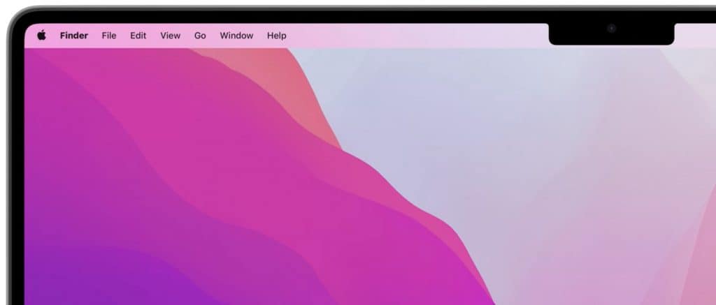 On the downside, Apple brought the new displays so close to the case edges that the new 1080p FaceTime HD camera (better videoconferencing quality but no Center Stage support) lives in an iPhone-like notch that cuts the Mac menu bar in half. Full-screen apps can avoid the notch. Although the notch isn’t ideal, iPhone users seldom notice it after a short while, and we expect the same will be true here.