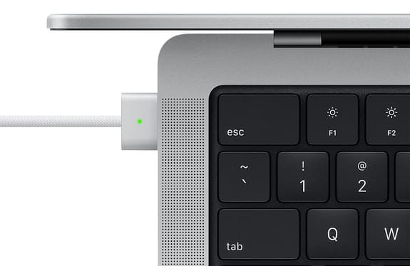 - MagSafe: Although you can charge using the Thunderbolt 4 ports, most people will rely on the dedicated MagSafe 3 charging port. The MacBook Pros (apart from the low-end 14-inch model) include powerful chargers and a USB-C to MagSafe 3 charging cable capable of fast-charging the devices. They should also provide longer battery life than previous models.