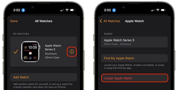 Using the Watch app on your old iPhone, go to the My Watch tab, tap All Watches (at the top left of the screen), tap the ⓘ button next to your Apple Watch, and tap Unpair Apple Watch.