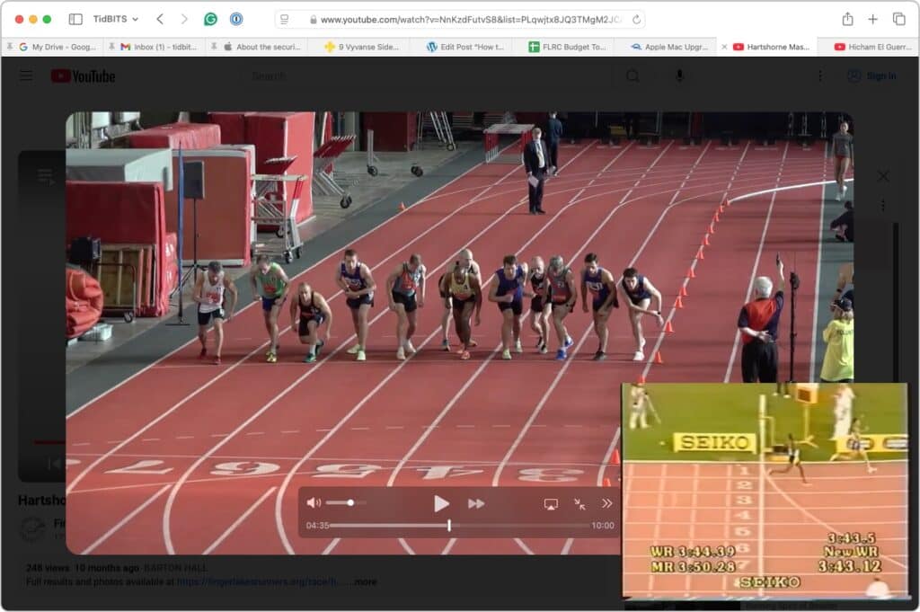 Once you’re in the Video Viewer, switching to another tab in Safari or another app whose window obscures at least half the Video Viewer window causes Safari to switch to Picture in Picture, moving the video to a small window that floats above all other apps. You can resize that window and move it to any screen corner while it’s open, and it remembers its size and location for subsequent uses. Although multiple tabs and windows can use Video Viewer simultaneously, only one can be in Picture in Picture at a time.