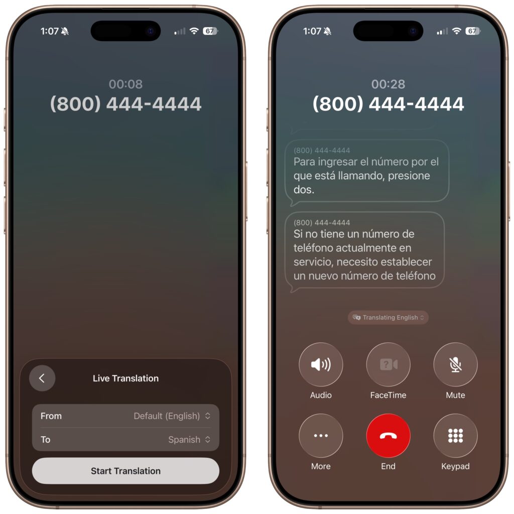 If you need to call someone who speaks a different language (as long as it’s English, French, German, Portuguese, or Spanish), the new Live Translation feature might be helpful. Once you’re on the call, tap the More button, then tap Live Translation, and choose the languages for From and To. We highly recommend testing this feature before you actually need it, as it can take a few minutes to download a new language for the first time. After that, tap Start Translation to hear spoken translations and have your voice translated for your caller. You’ll also see a transcript of both sides of the conversation.