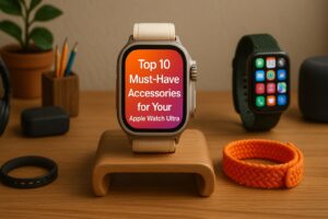 Fun fact: the Ultra’s titanium case is tough enough to sit on your desk. With the right Apple Watch Ultra accessories (yes, some people say “Apple Ultra Watch”), it also charges more safely, tracks longer, and survives more adventures.