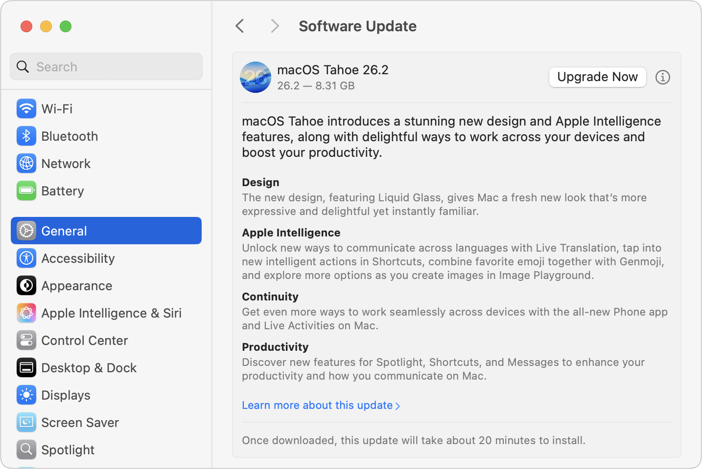 Unlike last year, when Apple was releasing new Apple Intelligence features with each macOS 15 Sequoia update, the company launched nearly all the promised new features in Tahoe with version 26.0. There’s no need to wait for the more personalized Siri upgrade Apple promised for 2026—we won’t know how good it is until it ships.