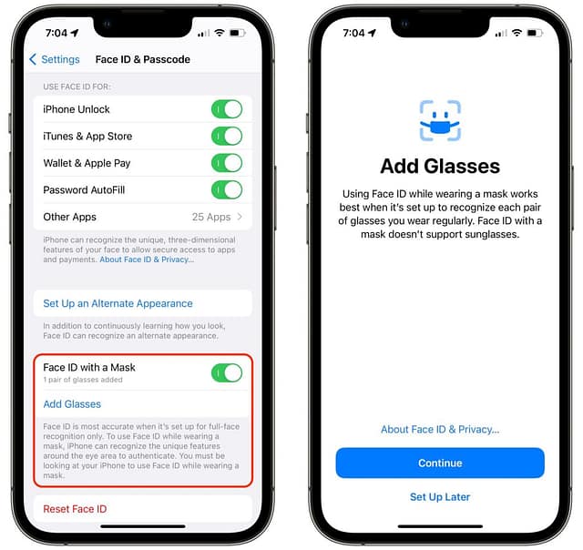 Shortly after the start of the COVID-19 pandemic, Apple made it so your Apple Watch could unlock your Face ID-enabled iPhone when you were wearing a mask. Starting in iOS 15.4, the company has taken the next step and enabled Face ID on the iPhone 12 and later to work even when you’re wearing a mask. If you didn’t already set up Face ID with a mask after updating to iOS 15.4, go to Settings > Face ID & Passcode and enable Face ID with a Mask. You’ll have to run through the Face ID training sequence again, and more than once if you sometimes wear glasses, but it’s quick and easy. Face ID may not work quite as well when you’re wearing a mask, and it doesn’t support sunglasses, but it’s way better than having to enter your passcode whenever you’re masked.